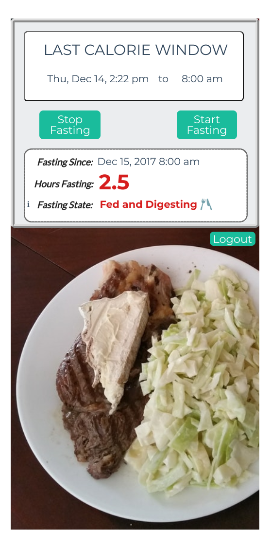 There’s a little info button in the app to give you the pop-up cheat sheet for fasting: for 3 - 5 hours after you eat, your body is digesting. If you go a full 12 hours without consuming food, your body actually does start to “fast” (even though we think of it as fasting for 12 hours) and that’s when your body really starts to burn fat at a nice clip. In between, you’re “satiated.” So, if you press the “Start Fasting” button in IF Timer, then the app will hold on to that time and every time you come back to refresh the page (it’s a web app, so it just runs in a browser), your status will be updated and you can see at a glance how long you’ve been fasting and what fasting state your body is in (based on the theory of roughly how long your body does what).