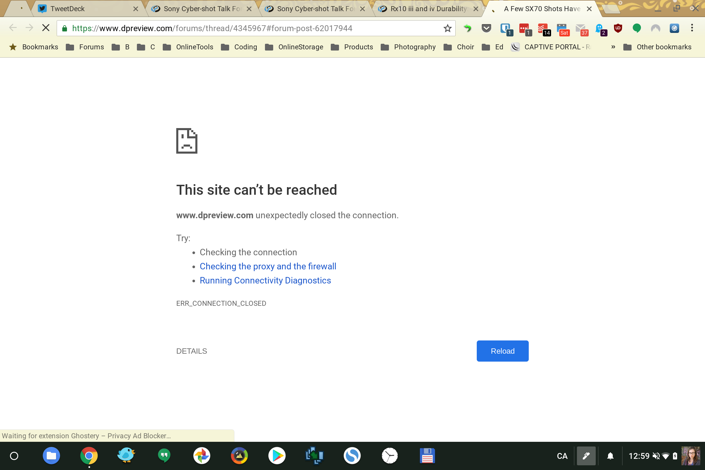 What does this look like to a Chromebook user on Radisson hotel wifi? After initially connecting via a splash screen, you can browse for anywhere from 2 to 60 seconds like normal. At some point, you will hit a web page (probably secure, since most pages are today), and you’ll be greeted with Chrome’s offline dinosaur, or a message that the website you were on has closed the connection, and perhaps a popup notification saying that the wifi connection requests that you sign in.